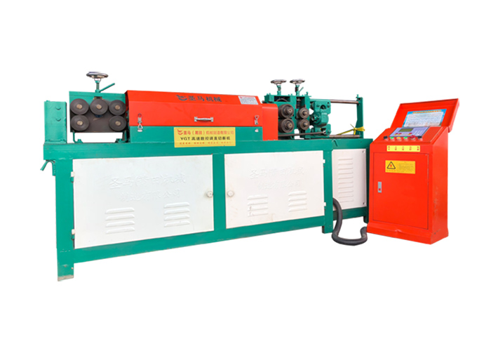 构造:主要由动力电机(分牵引电机与切断电机)、牵引系统、减速系统、调直框架机构、计米机构、数控面板、机体外壳及切断机构、电力开关系统等组成。工作原理:由电动机通过皮带传动增速,使调直筒高速旋转,穿过调直筒的钢筋被调直,并由调直模清除钢筋表面的锈皮;由电动机通过另一对减速皮带传动和齿轮减速箱,一方面驱动两个传送压辊,牵引钢筋向前运动,另一方面带动曲柄轮,使锤头上下运动。当钢筋调直到预定长度,锤头锤击上刀架,将钢筋切断,切断的钢筋落入受料架时,由于弹簧作用,刀台又回到原位,完成一个循环。